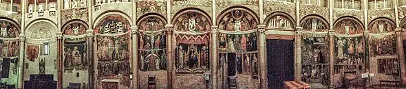 - Les fresques du cycle d’Abraham, sont disposées un emplacement sur deux, l’autre étant réservé à une fenêtre :