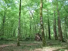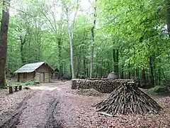 - Un sentier forestier mène à un chantier forestier voisin, de fabrication de charbon de bois, et se prolonge sur 14 km