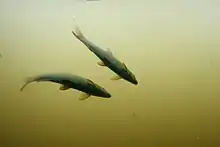 - les mâles et les femelles remontent le courant vers l'amont au printemps pour aller frayer sur des lits de gravier[1].