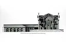 Les deux barchesses du projet devaient être reliées à la maison seigneuriale par deux portiques curvilignes, identiques à ceux que Palladio dessine, en 1554, pour la villa Badoer à Fratta Polesine.