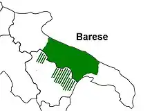 Le barese (barése dans ce dialecte, barese en italien) est le dialecte du napolitain parlé dans la région de Bari et plus généralement dans la partie centrale des Pouilles. Il est pratiqué par 2 102 023 personnes, avec des changements notables dans les accents aussi parmi les quartiers de la ville[1],[2].