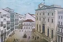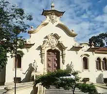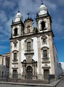 De plus, même les élites dirigeantes les plus puissantes étaient constamment affligées dans la vie quotidienne coloniale par des difficultés, des incertitudes et des pénuries de toutes sortes, comme en témoignent les éternelles plaintes du marquis de Lavradio et d'autres fonctionnaires du royaume, ce qui fait que même leurs propres palais et les bâtiments publics les plus importants sont pauvres et modestes par rapport à leurs homologues portugais[18],[47]. Parmi le petit nombre d'exemples significatifs dans la catégorie des palais publics, nous pouvons souligner quelques vieux hôtels de ville et prisons, comme celui d'Ouro Preto (pt), peut-être le plus célèbre, avec une façade riche et animée où l'on trouve un portique à colonnes, un escalier monumental, une tour et une statuaire[80] ; celle de Mariana (pt)[81] et celle de Salvador (pt)[82], ainsi que les palais à usage mixte de résidence officielle et de maison d'expédition, tels que le palais des Gouverneurs à Ouro Preto, celui de Pará (pt)[83] et le palais impérial de Rio de Janeiro, qui était l'une des résidences de la famille régnante lorsqu'elle s'est installée dans la colonie en 1808[84]. D'autres survivent, mais ont vu leurs caractéristiques baroques très défigurées par les réformes ultérieures, comme ce fut le cas des palais des Gouverneurs du Maranhão (pt) et de Bahia[85] Bien qu'appartenant à l'Église, il faut inclure dans cette catégorie l'important palais archiépiscopal de Salvador[86].