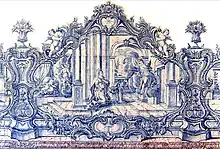 Enfin, la peinture baroque brésilienne comprend la belle collection d’azulejos peints, généralement importés du Portugal, où la technique a été très populaire, et qui a donné une note caractéristique à de nombreux couvents, églises et maisons du baroque brésilien. À partir du XVIIe siècle, la coutume s'est enracinée au Brésil, avec des panneaux décorés principalement de motifs végétaux et géométriques, semblables à ceux adoptés sur les tapis, avec une riche polychromie et montrant l'influence des arabesques mudéjares. À l'approche de la fin du siècle, les couleurs ont progressivement perdu de l'espace, et au XVIIIe siècle, le panneau peint uniquement en bleu était très répandu, avec des pièces plus petites mais avec un riche cadre ornemental. Celle-ci est issue de la céramique chinoise appréciée des Portugais, également majoritairement monochrome, et des innovations dans les techniques de cuisson, qui ont également permis la production de carreaux à l'échelle industrielle. Dans cette phase, les panneaux deviennent narratifs, avec des compositions figuratives complexes et un thème diversifié, souvent avec des scènes profanes et historiques, des paysages et des allégories. Cette iconographie est généralement tirée d'estampes. À la fin du XVIIIe siècle, les couleurs reviennent, se stabilisant dans une palette de quatre tons. Jusqu'au milieu du XVIIIe siècle, les carreaux ont été créés par des artisans anonymes, mais certains noms commencent alors à apparaître, dans la phase dite des « grands maîtres », parmi lesquels Bartolomeu Antunes, Valentim de Almeida et surtout António de Oliveira Bernardes (pt), considéré comme le plus grand azulejista du baroque portugais[109].