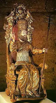 Le baroque a donné lieu à une vaste production de statuaire sacrée. Partie intégrante de la pratique religieuse, la statuaire dévotionnelle a trouvé place aussi bien dans le temple que dans la maison privée. Cabral avait déjà apporté une statue de Notre-Dame-des-Navigateurs avec lui, et les premières pièces qui sont parties du pays ont été importées du Portugal, en compagnie des missionnaires. Tout au long du baroque, l'importation d'œuvres s'est poursuivie, et nombre de celles qui existent encore dans les églises et les collections de musée sont d'origine européenne. Mais depuis le XVIe siècle, des écoles locales de sculpture ont commencé à se former, composées principalement de religieux franciscains et bénédictins, mais avec quelques artisans laïcs, qui travaillaient principalement l'argile. Les premières images d'argile bouillie créées au Brésil qui ont été rapportées avec certitude sont celles de João Gonçalo Fernandes, datant des années 1560 et qui, par chance, a survécu à l'époque. Les indigènes ont pu contribuer plus activement à cette technique, en enseignant à l'homme blanc des techniques de peinture sur céramique et des connaissances sur les pigments naturels tels que le tabatinga (pt) et le tauá (pt), qu'ils ont maîtrisé pendant des siècles[110],[111]. Les Indiens ont également donné leur collaboration en tant que santeiros, surtout dans les réductions du sud et de certaines du nord-est, et dans ces cas on trouve souvent des traces ethniques indiennes sur le visage des icônes, comme on peut le voir dans certaines sculptures des Sept villages des Missions (pt)[112],[113]. Les Jésuites, en revanche, ont donné la préférence au bois, qui à partir de la fin du XVIIe siècle va prédominer, déterminant également des changements dans la conformation des pièces. La technique de l'époque exigeait que les pièces d'argile soient modelées de manière compacte, avec un faible relief et sans parties saillantes, qui pouvaient facilement se briser pendant la cuisson. Le bois, en revanche, permettait de sculpter avec des formes ouvertes, volantes et dynamiques, beaucoup plus libres dans l'espace tridimensionnel[111]. La plupart des statues baroques brésiliennes ont finalement été réalisées en bois polychrome. Au début, l'argile était surtout utilisée, bien qu'elle n'ait jamais été abandonnée, et la pierre était rare, plus réservée à la décoration des façades et des monuments publics[114].