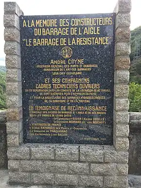 Le barrage de l’Aigle, dit « le barrage de la Résistance », fut construit pendant la Seconde Guerre mondiale, inauguré le .