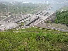 Ce dispositif est 30 m plus long que celui de la voie maritime du Saint-Laurent, mais deux fois moins profond. Avant la construction du barrage, la capacité maximale au niveau du site des Trois Gorges était de 18 millions de tonnes par an. De 2004 à 2007, ce sont au total 198 millions de tonnes qui ont franchi les écluses. La capacité de transport a été multipliée par six et les coûts réduits de 25 %. Une capacité totale de 100 millions de tonnes par an devrait être atteinte[3].