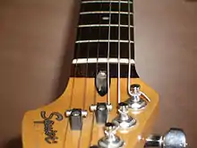 - du côté de la tête, au fond d'une cavité cylindrique (modèles Fender récents). L'ajustement se fait au moyen d'une clé Allen.