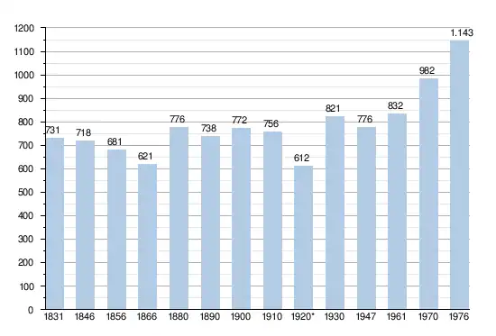 - Sources : INS, Rem. : 1831 jusqu'en 1970 = recensements, 1976 = nombre d'habitants au 31 décembre.