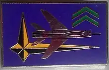 - à gauche, la rose de l'OTAN (les branches donnent le degré d'importance de la menace en provenance des points cardinaux à la création de l'insigne) ;
