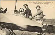 Clément Bonnard aux commandes d'un monoplan Déperdussin Type B, accompagnant un passager, Louis Mouthier se tenant à ses côtés.