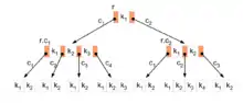 - L'arbre B est une structure en arbre où toutes les branches ont la même longueur, et chaque nœud comporte entre N/2 et N branches. C'est une structure très souvent utilisée pour les index[13].