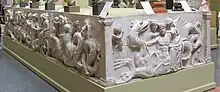 Les panneaux portant la scène mythologique, un thiase marin de style hellénistique tardif, sont constitués d'un marbre différent provenant d'Asie[5],[1]. Ils sont conservés à la glyptothèque de Munich. Les reliefs représentent probablement les noces de Neptune et Amphitrite.