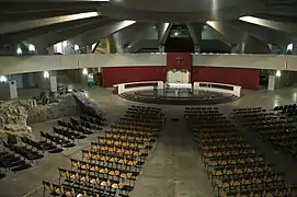 L'édifice comprend deux niveaux (le sanctuaire et la crypte) surmontés d'un toit de forme conique, nervuré, en béton armé, de 103 mètres de hauteur totale. La hauteur intérieure est de 94,30 mètres et la pointe du cône est couronnée d'une statue de la Madone en bronze[1].