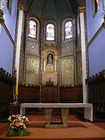 Au-dessus de la stalle épiscopale du chœur de la basilique apparaît « Notre-Dame tenant l'Enfant-Dieu sur ses genoux ». Il s'agit d'une statue aux dimensions exceptionnelles, haute de 1,08 m et d'un poids de 400 kg, taillée dans les dernières années du XVe siècle ou du début du XVIe siècle[6].