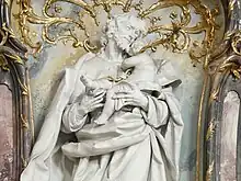 Le sanctuaire du chœur contient un maître-autel de hauteur impressionnante. Le panneau central montre une trinité, avec un globe terrestre aux pieds de Jésus. Deux statues représentent Pierre et Paul plus grands que nature.