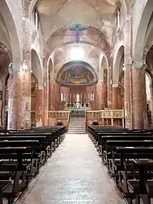 En 1998, lors de la rénovation du système de chauffage, une mosaïque médiévale a été découverte dans la première travée du bas-côté droit avec des scènes entourées de bandes aux motifs décoratifs et iconographiques typiques du répertoire roman. La mosaïque a pu être recouverte en raison d'interventions dues à l'affaissement du sol qui s'est produit dans cette partie de l'église. Les fresques du XIIIe siècle conservées sur les piliers de la nef centrale méritent une mention particulière.