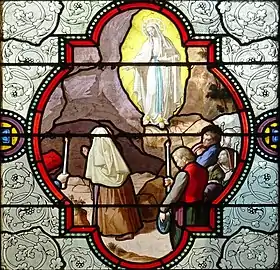 - Guérison de Mademoiselle Lambert (sœur du concepteur des vitraux).