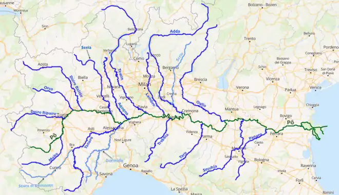 Le bassin versant du Pô est un bassin versant qui couvre plusieurs régions de l'Italie et de la Suisse ainsi que quelques fragments en France.