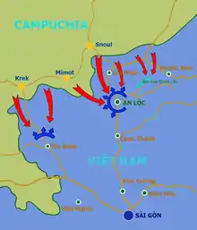 La bataille d'An Loc, livrée du 13 avril au 20 juillet 1972 dans la province de Bình Phước, est une grande bataille d'envergure et décisive de la guerre du Viêt Nam qui a duré 66 jours et a abouti à une victoire décisive du Viêt Nam du Sud, arrêtant l'avancée des Nord-Vietnamiens vers Saigon dans le cadre de l'offensive de Pâques.