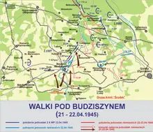 Le 17 avril 1945, les Polonais franchissent les défenses allemandes de la rivière Weisser Schops (en), traversent la Neisse à la poursuite des armées allemandes qui se replient vers Dresde. Les 18 et 19 avril 1945, la 8e division d'infanterie et le 1er corps d'armée repoussent les Allemands au sud. Les autres unités[2] gagnent Dresde avec des têtes de pont sur la Sprée, au nord de Bautzen. Le 20 avril 1945, le 7e corps mécanisé soviétique entre dans Bautzen et sécurise une ligne au sud de Niesky.