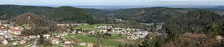 Vue sur Bruyères de la perspective des troupes américaines qui arrivent du sud-ouest.