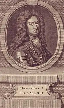 Macaulay écrit dans son Histoire d'Angleterre : « On découvrit des corps nombreux de cavalerie et d'infanterie qu'à leur uniforme on reconnut pour des troupes régulières. […] Il [Talmash] était convaincu que les forces qu'il voyait rassemblées sur le rivage n'étaient qu'un ramas de paysans qui avaient été racolés en toute hâte dans le pays avoisinant. Certain que ces soldats pour rire s'enfuiraient comme des troupeaux de moutons devant de vrais soldats, il ordonna à ses hommes de ramer vers le rivage. Un feu terrible moissonna ses troupes avant qu'elles eussent pu atteindre la terre. À peine avait-il mit le pied lui-même sur le rivage qu'il reçut un boulet de canon dans la cuisse »[12]. Grièvement blessé, le général anglais est emporté vers l'escadre ; il mourra quelques jours plus tard. La contre-attaque française repousse les hommes débarqués à la mer. Ceux-ci ne peuvent plus battre en retraite car la marée descendante a laissé les chaloupes à sec. Seulement une dizaine d'entre elles rejoignent la flotte anglaise[8].