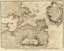 Dans la soirée du 17 juin, la flotte anglo-hollandaise, commandée par l'admiral John Berkeley, est signalée en mer d'Iroise. Elle se compose de trente-six vaisseaux de guerre, douze galiotes à bombes et 80 navires de transport portant environ 8 000 hommes de débarquement[15]. La flotte mouille à mi-distance entre Bertheaume et le Toulinguet. Le contre-amiral, le marquis de Carmarthen, s'approche des côtes afin d'inspecter les lieux et les positions françaises. À son retour, il « annonça que les défenses, dont il n'avait vu qu'une faible partie, étaient formidables. Mais Berkeley et Talmash le soupçonnèrent d'avoir exagéré le danger »[12]. À cette date, du côté français, la moitié des renforts promis ne sont pas encore arrivés et Vauban écrit dans la lettre déjà citée précédemment :