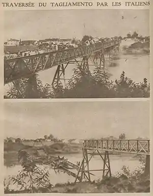 Les troupes germano-austro-hongroises sont cependant arrêtées sur le Piave, la majeure partie des troupes italiennes en retraite étant parvenues à se replier derrière ce fleuve et à faire sauter les ponts, tandis que des renforts parviennent à stopper les unités germano-austro-hongroises éloignées de leurs bases de ravitaillement[14].