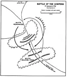 La bataille de Cowpens a été menée le au cours de la campagne du sud de la guerre d'indépendance des États-Unis. Ce fut une victoire écrasante des forces révolutionnaires placées sous le général de brigade Daniel Morgan contre les britanniques de Banastre Tarleton.