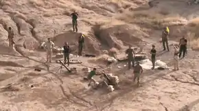 Miliciens chiites de Saraya al-Khorasani tirant au mortier contre des positions de l'État islamique, le 27 septembre 2017.