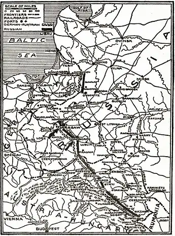 Le chef d'état-major Conrad von Hötzendorf avait pour objectif d'entrer en Pologne pour couper la ligne stratégique de ravitaillement Varsovie-Kiev, la première armée austro-hongroise s'avance, soutenue par la quatrième armée.