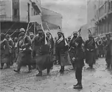 - (en) Russia's War with the Germans. The Capture of L'viv in Galicia. Prise de Lviv par l'armée russe, estampe populaire russe, 1914, sur wdl.org.