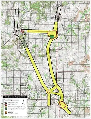 Le Civil War Trust, ses membres et ses partenaires sauvegardent 326 acres du champde bataille de Mine Creek jusqu'en 2017[3].