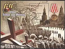 Pour renforcer le moral de l'Armée rouge et de la population, Staline ordonne que le traditionnel défilé militaire du se déroule sur la place Rouge. Les troupes paradent devant le Kremlin et marchent ensuite directement vers le front. La parade eut une grande importance symbolique et montra la volonté de résister des Soviétiques. Cependant, l'Armée rouge est dans une situation précaire. En dépit du déploiement de 100 000 hommes en renfort autour de Kline et Toula, où sont attendues des offensives allemandes, les défenses soviétiques demeurent minces. Néanmoins, Staline ordonna une série de contre-attaques préventives, malgré le désaccord de Joukov qui insistait sur le manque total de réserves[35]. La Wehrmacht brisa ces offensives, privant l'Armée rouge d'un matériel qui aurait pu être utilisé dans la défense de Moscou. L'offensive fut cependant couronnée de succès à Aleksino, parce que les Allemands ne disposaient toujours pas d'artillerie pouvant détruire les T-34[34].