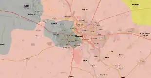 Le 18 juin, l'armée irakienne annonce le début de son offensive sur la vieille ville[392],[393],[394],[395],[396]. Environ 5 000 hommes sont engagés dans cet ultime assaut[397]. La division d'or, menée par les lieutenant-colonels Mohannad el-Tamimi et Salam Jassem Hussein[398], attaque depuis le quartier de Farouq, au nord-ouest ; la 16e division depuis Bab el-Sinjar au nord et Bab al-Lakash au sud ; et la police fédérale depuis Bab el-Baid au sud-ouest[389]. La zone est encore défendue par plusieurs centaines de djihadistes gardés en réserve et constitués de combattants parmi les plus aguerris[399]. Les combats ont alors lieu dans des rues très étroites : l'armée irakienne ne peut plus utiliser de blindés et l'État islamique ne peut plus engager de véhicules kamikazes[399]. Les forces de l'EI utilisent alors des mines, des snipers et des motos kamikazes[400]. Le 20 juin, la 9e division de l'armée irakienne et la Force d'intervention rapide achèvent l'encerclement de la vieille ville en reprenant le quartier d'al-Shifaa et notamment l'hôpital al-Sina[401],[399],[389]. Selon l'ONU, plus de 100 000 civils sont toujours retenus comme boucliers humains[393],[394],[402].