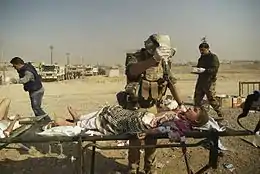 Du côté de l'armée américaine, un soldat est tué le 20 octobre 2016 par l'explosion d'une bombe artisanale au nord de Mossoul[10],[486], un autre est mortellement blessé le 29 avril 2017 par une explosion à l'extérieur de la ville[11].