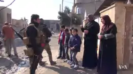 À Mossoul, la coalition détruit un pont le 22 novembre afin d'empêcher l'EI d'acheminer des renforts dans les quartiers est ; un seul des cinq ponts de Mossoul enjambant le Tigre est alors encore debout[254],[48]. À la date du 25 novembre, l'armée irakienne affirme avoir reconquis plus de 40 % de la partie est de la ville[255]. Elle contrôle les quartiers d'al-Arbajiyah, Qadisiyah al-Thania, Tahrir, Saddam, al-Samah, Karkoukli et depuis peu, Aden[255]. L'armée irakienne a pénétré dans le quartier d'al-Khadraa, au nord d'Aden et les combats se poursuivent également dans les quartiers al-Bakr, Ilam, Akha, al-Quds, al-Karamah, al-Intissar et Judayda al-Mufti[255]. Le 30 novembre, elle parvient à entrer dans les quartiers Sumer et Wahda[256]. Mais en décembre, avec la venue de l'hiver, la progression des troupes irakiennes se ralentit[257],[258]. La division d'or est déjà éprouvée par de lourdes pertes, avec 20 % de ses soldats tués ou blessés et 25 % de ses véhicules détruits ou endommagés[259],[48].