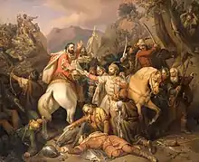 L'armée de Charles, forte de 30 000 hommes entre alors dans un défilé étroit, et tombe dans une embuscade. L'armée valaque, conduite par Basarab en personne, et qui compte certainement moins de 10 000 hommes, comprend en majorité, selon la chronique, des bergers recrutés sur place. Ils commencent à bombarder l'armée hongroise depuis les hauteurs, avec des rochers, des pierres, des billes de bois et des flèches. Ne pouvant ni s'échapper ni combattre, les soldats de Charles subissent une défaite sévère, et beaucoup périssent, du fait des projectiles mais surtout piétinés dans la panique. D'après la chronique, Charles parvient à fuir en se déguisant en palfrenier. Le voïvode hongrois de Transylvanie, vassal de Charles, périt lui aussi dans la bataille, ainsi que plusieurs nobles hongrois. D'autres sont faits prisonniers et doivent racheter leur liberté, selon la coutume médiévale. Du côté valaque, les pertes sont minces. Quelques historiens comme Florin Constantiniu pensent que les Coumans aidèrent Basarab à obtenir la victoire en bloquant les arrières de l'armée hongroise. Ils affirment aussi que ce fut une bataille entre roumains, car beaucoup de soldats de Charles recrutés en Transylvanie parmi les hommes des boyards qui lui étaient fidèles, étaient eux aussi des valaques. La seule chose sûre, est que Basarab garda sa barbe et ses moutons, comme en conclut Nicolae Iorga.