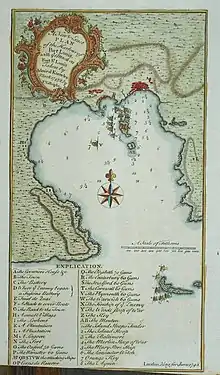 Knowles qui avait prévu initialement d'attaquer la ville espagnole de Santiago de Cuba avec son escadre, doit changer ses plans en raison de forts vents contraires et décide alors d'attaquer le fort de Saint-Louis-du-Sud[3],[4]. Peu avant midi, le 22 mars 1748 à bord de l'HMS Elizabeth, Knowles se présente devant la baie de Port Saint Louis, prenant par surprise la garnison chargée de défendre le fort. L'escadre britannique est alors forte de neuf vaisseaux de ligne, elle est composée du HMS Cornwall (80 canons), du HMS Elizabeth (70), du HMS Plymouth (60), du HMS Canterbury (60), du HMS Strafford (60), du HMS Warwick (60), du HMS Worcester (60), du HMS Oxford (54), et des sloops HMS Merlin (14) et HMS Weazel (16)[5]. Face à elle se dresse une imposante forteresse aux murs de pierre de 24 pieds (7,32 m), défendue par 78 canons, une garnison de 310 hommes et une compagnie d'artilleurs noirs, sous les ordres du gouverneur Étienne Cochard de Chastenoye.