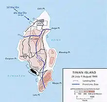 La victoire américaine, le , lors de la bataille de Saipan faisait de Tinian, située à 6 km au sud, l'étape suivante dans la conquête des îles Mariannes.
