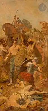 La bataille de l'Allia se déroule le 18 juillet 390/389 selon la chronologie varronienne[3] ou 387/386 av. J.-C. selon la chronologie grecque[4] et oppose les Gaulois Sénons de Brennus aux troupes de la République romaine sur les rives de l'Allia, un affluent du Tibre, à seulement 16 kilomètres de Rome. Les Gaulois remportent une victoire écrasante qui leur ouvre la route de Rome. Les Romains ont tout juste le temps de mettre en sûreté à Cæré les vestales et les flamines qui emportent les objets sacrés. Quelques jours plus tard, Rome est investie par les Gaulois et mise à sac.