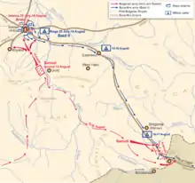 L'armée byzantine se retire le long de la vallée de Sofia vers Ihtiman où elle s'arrête pour la nuit. C'est alors que des rumeurs grandissantes font croire aux Byzantins que les Bulgares ont barré les routes dans les montagnes environnantes ce qui engendre une certaine panique parmi les soldats le lendemain. La retraite perd alors en cohésion[10]. Quand Samuel prend conscience de ce désordre, il lance son armée vers le camp adverse et la retraite byzantine se transforme en déroute. L'avant-garde byzantine parvient à se frayer un chemin sur les versants alentour qui ne sont pas encore tombés aux mains des Bulgares. Le reste de l'armée est encerclée par les Bulgares. Parmi l'infanterie, seule l'unité d'élite arménienne parvient à briser l'encerclement avec de lourdes pertes pour ensuite conduire l'empereur à travers des routes secondaires. Quant aux soldats encerclés, nombreux sont ceux qui périssent lors de la bataille tandis que les autres sont faits prisonniers et que l'Insigne Impériale est saisie par les Bulgares[11].