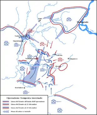 Le Blitzkrieg permit initialement de s'emparer de vastes territoires durant l'été 1942 mais il fut freiné en raison de la résistance de Stalingrad, verrou de la Volga. Les troupes allemandes étaient par ailleurs dispersées en plusieurs axes divergents, sur plus de 1 200 kilomètres.