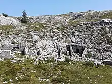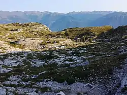 La pierre commémorative autrichienne sur le Mont Ortigara érigée par la Croix Noire autrichienne en 1967. |
