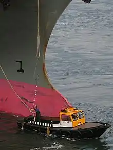 L'avancée d'un bateau est contrariée par la résistance de l'eau. Cette résistance peut être décomposée en plusieurs composants[16] dont les principaux sont la friction de l'eau sur la coque et la création de vagues. Pour réduire la résistance et donc accroître la vitesse pour une puissance donnée, il faut réduire la surface immergée et utiliser des formes de coque produisant des vagues d'amplitude moindre. Pour cela, les bateaux rapides sont souvent plus fins, avec des appendices de taille plus réduite ; la friction de l'eau est aussi réduite par un entretien régulier de la coque sur laquelle se déposent des animaux et des algues, en l'enduisant d'un antifouling. La résistance de vague peut être réduite par l'ajout d'un bulbe d'étrave et par des formes régulières et fines.