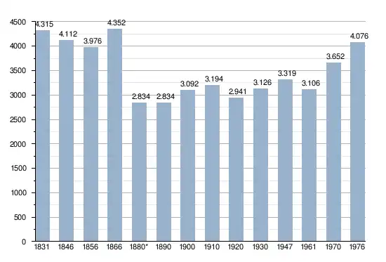 - Sources : INS, Rem. : 1831 jusqu'en 1970 = recensements, 1976 = nombre d'habitants au 31 décembre.
