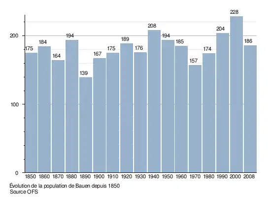 Selon l'Office fédéral de la statistique, Bauen compte 165 habitants en 2018[2]. Sa densité de population atteint 49 hab./km².