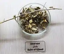Les désignations les plus récentes de l'arbre basalmique Commiphora gileadensis (L.) Christ., Balsamodendron meccansis Gled. et Commiphora opobalsamum[32].[style à revoir]