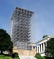Les restaurations ont duré jusqu'en pour le début de l'Oktoberfest. Pendant toute cette période la statue est recouverte d'échafaudages, ceux-ci sont mis à contribution pour le financement et sont recouverts de publicités.