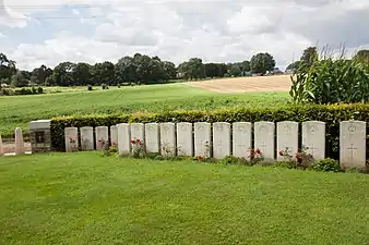 Ce cimetière militaire jouxte le cimetière communal, à l'est du village, Rue Neuve.